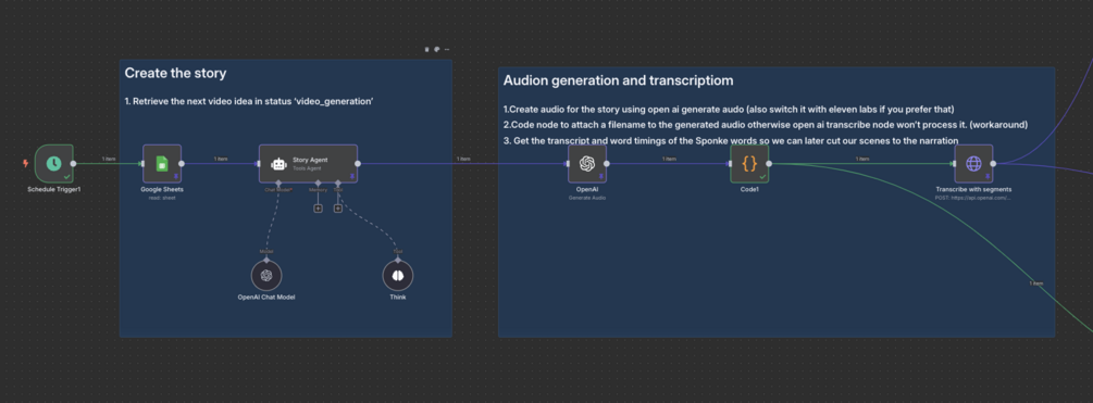 - No use of CREATOMATE OR JSON2 VIDEO APIs, uses code node or host your own api