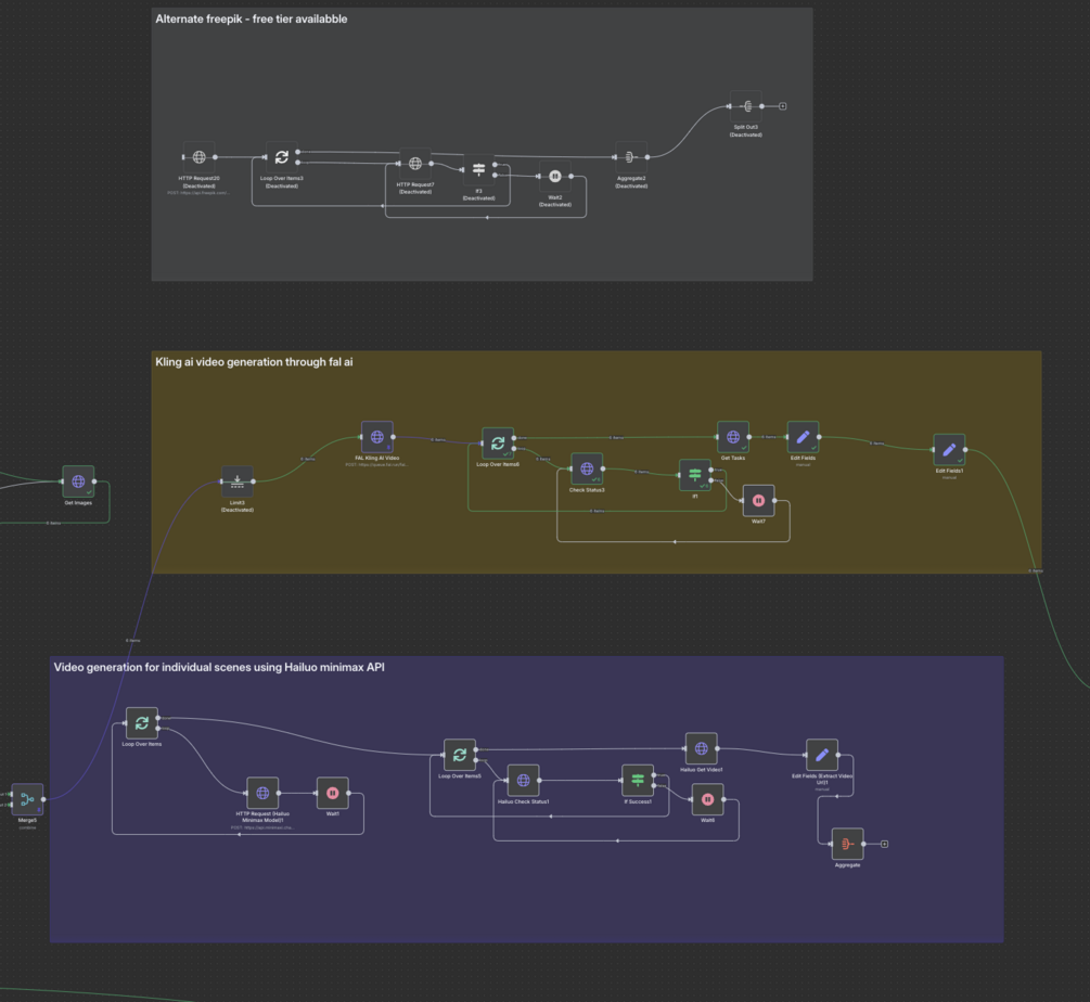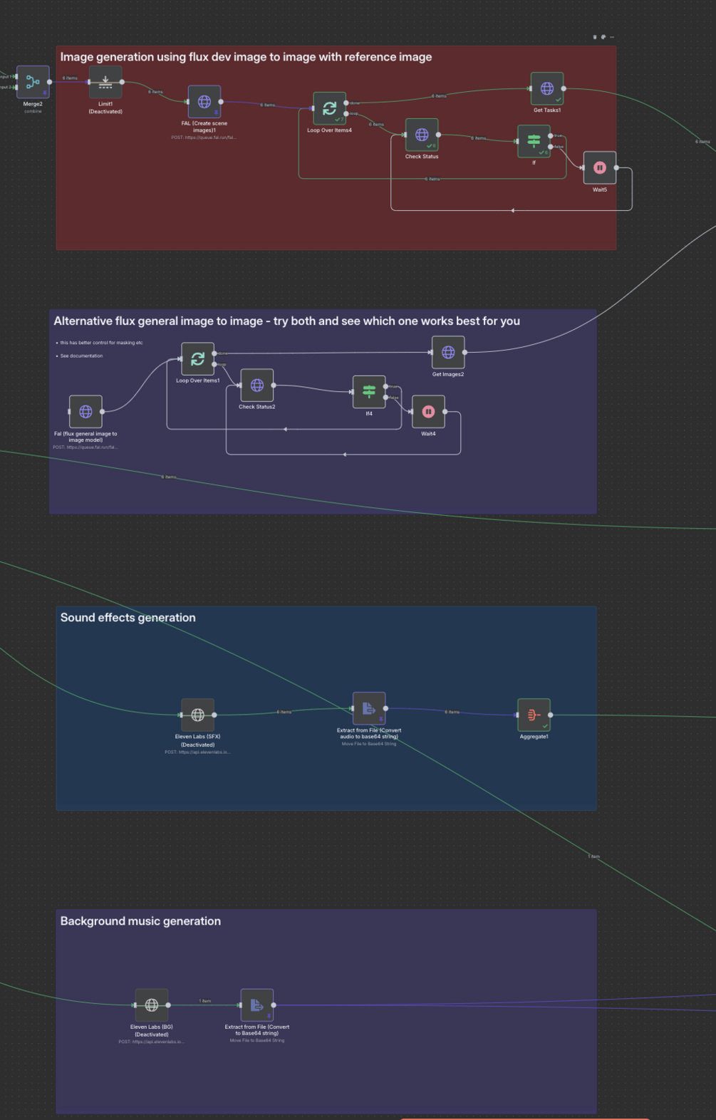 ⚠️ No CREATOMATE, no JSON2VIDEO — everything is done using code nodes, open APIs, and FFmpeg. Full control. Host it yourself or customize freely.